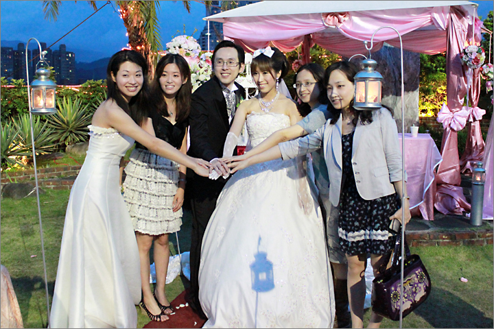 到這邊典禮差不多告一段落,又到了大家跟新人拍照的時間。